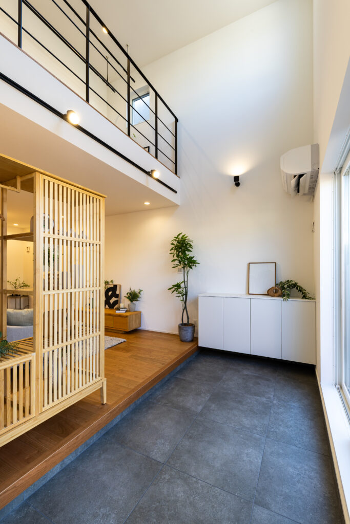 入った瞬間に広がる吹抜けがさらに開放感あふれる空間になっております。
